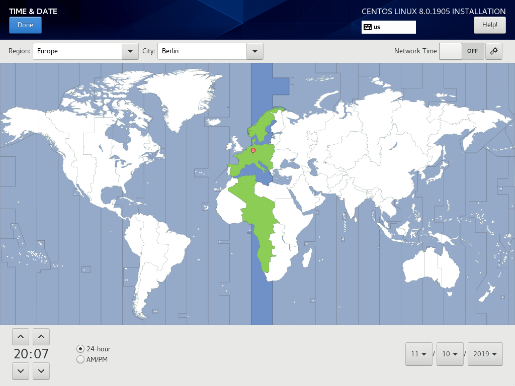 By clicking on Date & Time, this will be the screen you’ll be facing. Just select your time zone and set your current time. If you have selected (and I suggest you to) Network Time, time and date will be retrieved from the Internet. If you have no Internet connectivity, disable it by switching off the switch on the top-right corner.