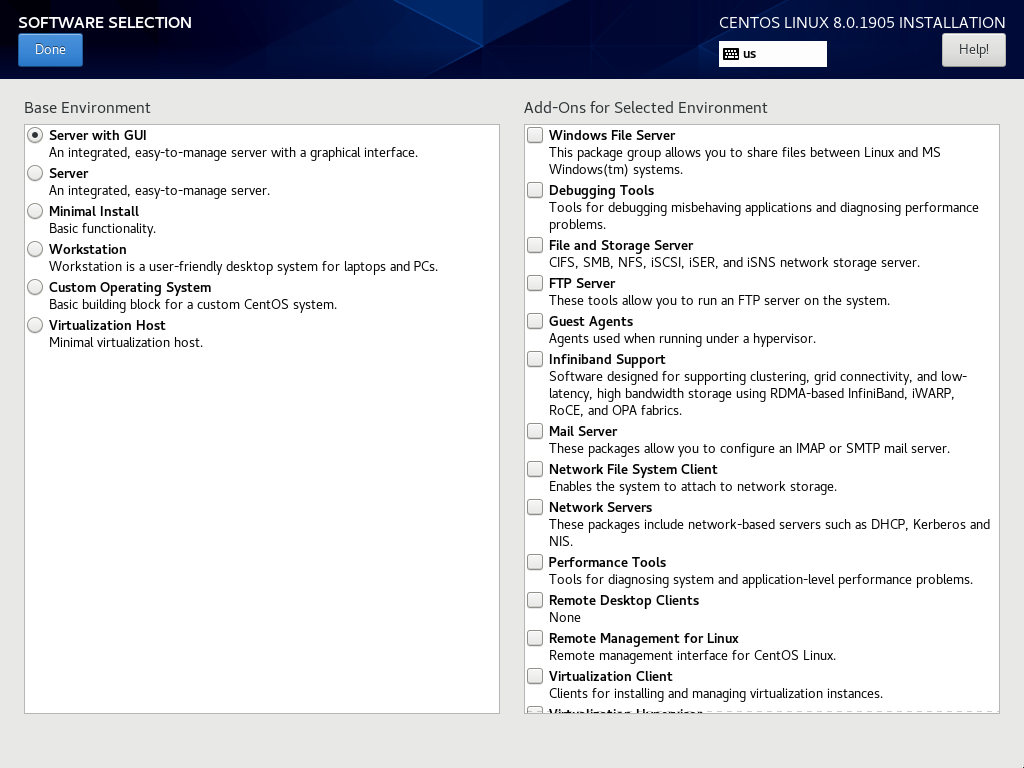In CentOS 8 during the whole installation process there will be a “Help!” button in the top-right corner.